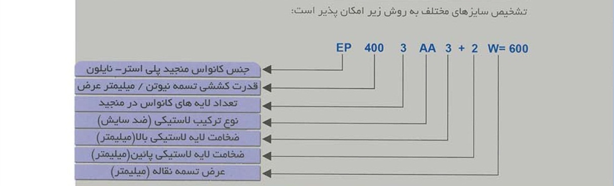علامت گذاری بر روی تسمه نقاله های دنا به روش زیر است :