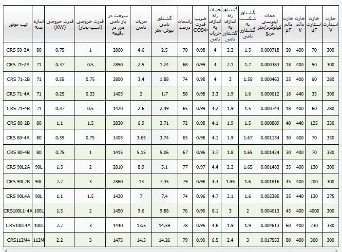 مشخصات فنی الکتروموتور تک فاز صنعتی دو خازنه موتوژن