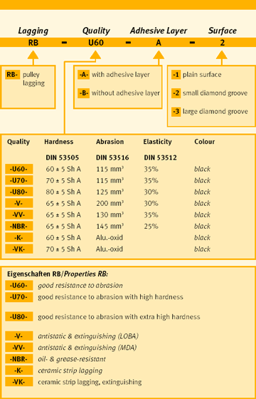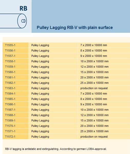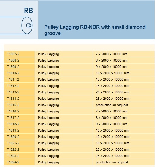 شرکت نیلوس آلمان تولید کننده ی رنج وسیعی از روکش های درام نوار نقاله می باشد که مشخصات فنی آنها در زیر قید شده است.