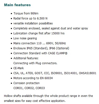 راهکاری ایده آل برای کانوایرهای زمینی (floor conveyors) : اهرم کلاچ همیشه در سمت چپ موتور گیربکس قرار می گیرد (در جهت مقابل موتور) و این ویژگی موجب می شود تا امکان طراحی شافت خروجی موتور گیربکس از هر دو طرف میسر گردد و در نتیجه قابل استفاده برای کانوایرهای زمینی می باشند.