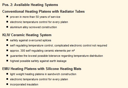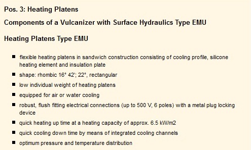 ترکیبی انعطاف پذیر از صفحات حرارتی با سیستم مخزن فشار نیلوس (هیدرولیک/پنوماتیک) ناهمواری سطوح اسپلایس ، مانند نوار نقاله های فرسوده ، را تصحیح می کنند تا فشار یکنواختی به تمام سطح اسپلایس وارد شود.
