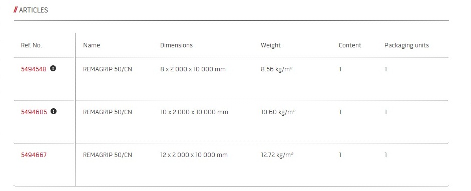 روکش درام نوار نقاله رماگریپ 50 برای گستره ی وسیعی از کاربردها (محیط های خشک یا مرطوب) طراحی شده است و به صورت عمومی به عنوان روکش درام برای پولی درایوهای تسمه های نخی با بارهای سبک یا متوسط قابل استفاده می باشد.
