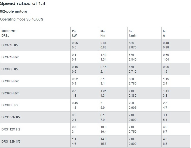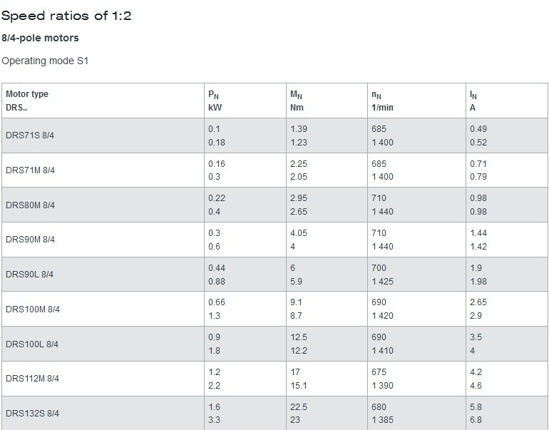 مشخصات فنی الکتروموتور دو سرعته SEW :