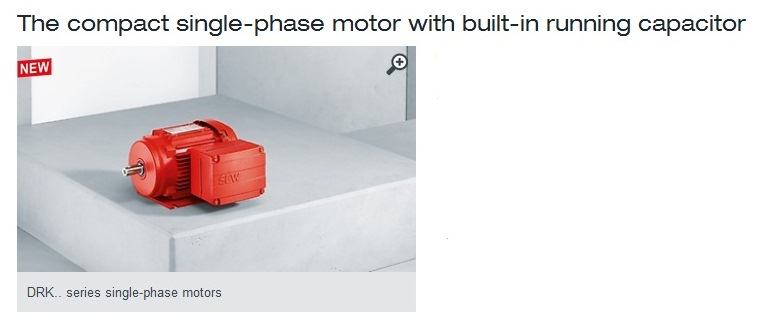 این الکتروموتورها در سراسر جهان قابل استفاده هستند زیرا قابلیت عملکرد با فرکانس 50 یا 60 Hz و ولتاژ 220 تا 230 V را دارا می باشند.در نهایت 6 سایز مختلف در رنج توان 0.18 تا 1.1 KW تولید می شود.در کاربردهایی که نیاز به گشتاور راه اندازی بالا ندارند : مانند فن ها ، پمپ ها یا کمپکتورها ... ما استفاده از الکتروموتور تک فاز SEW سری DRK را توصیه می کنیم.