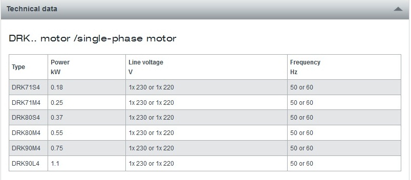 مشخصات فنی الکتروموتور تک فاز SEW سری DRK :